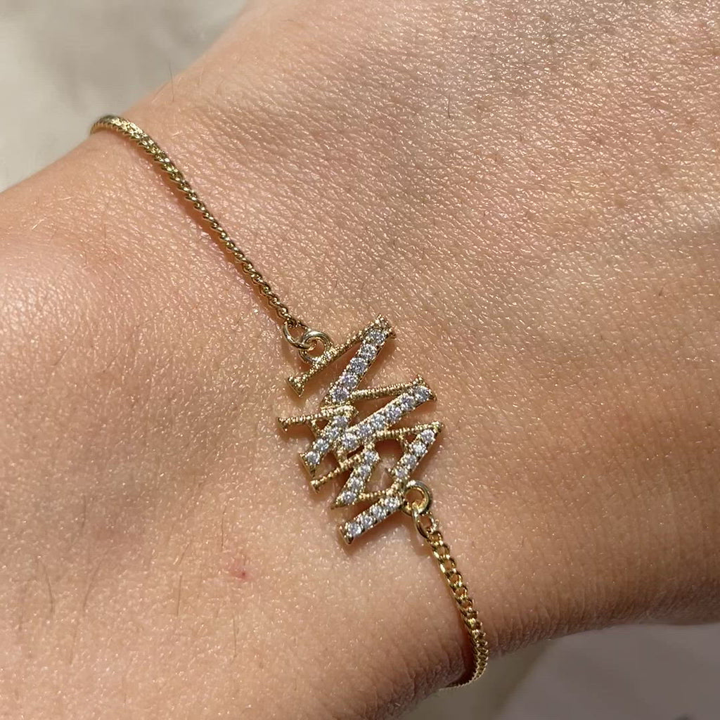 Bracelet en cuivre avec petites pierres de zircon avec texte Mama.